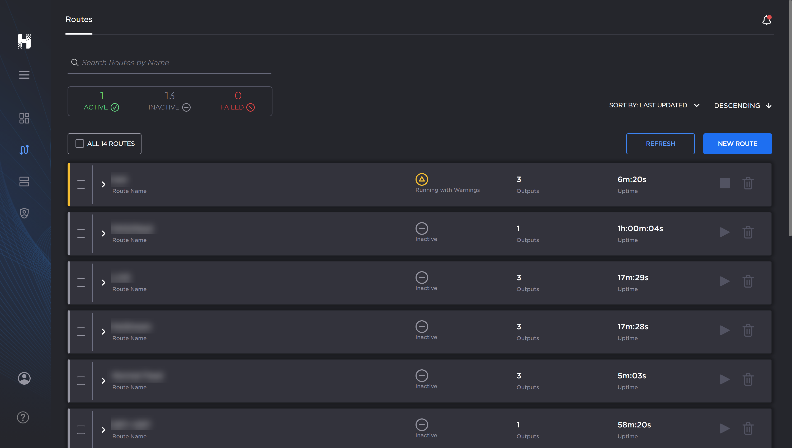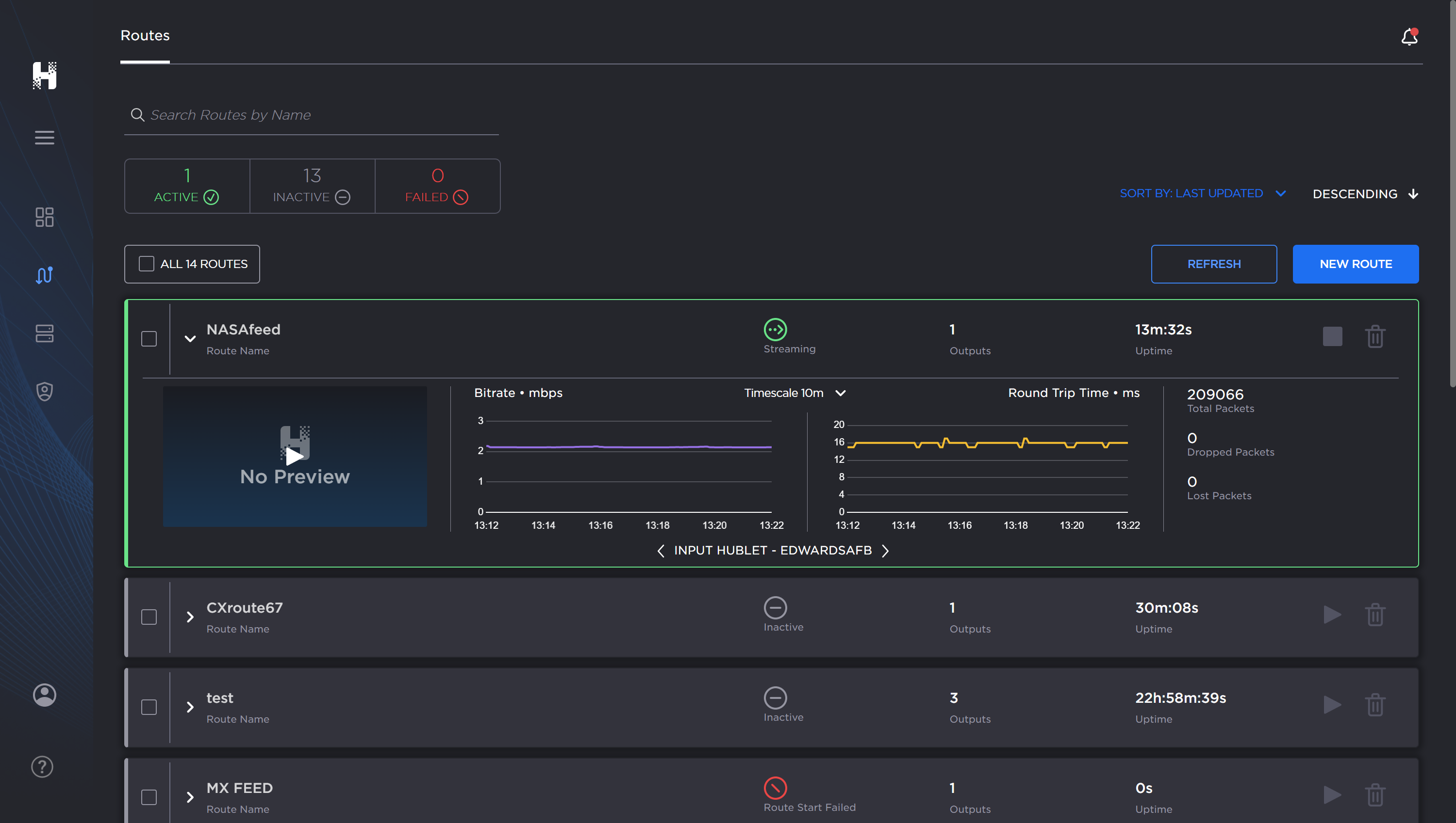 Remember routes are only visible from the subscription in which they were created. For instance, if you create a route under subscription n, you can only see that route if subscription n is currently selected. See Changing Subscriptions for how to switch to a different subscription.