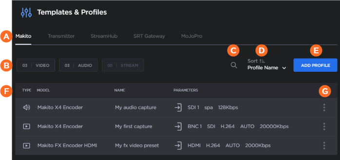 Currently, profiles can only be created for and applied to Makito Encoders.