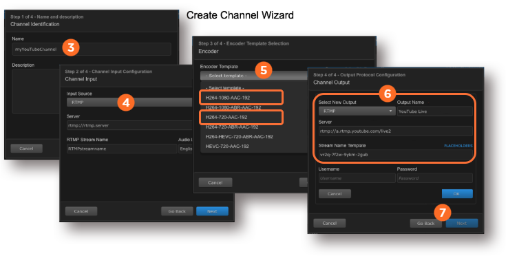 In Step 3, choose 1080 AAC or 720 AAC for the Encoder Template.