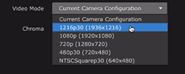 Chroma | (Source must be GigE Vision) Select the chroma value from the drop-down list, or use the current camera settings. ![]() |