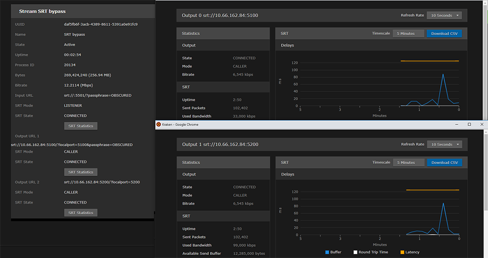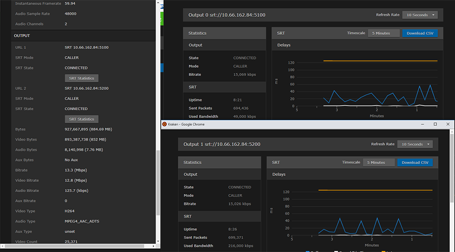 The Delays section provides a graphical overview of how the SRT stream buffers are handling the traffic.