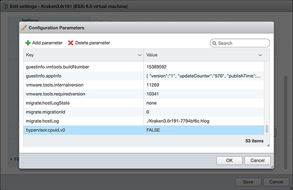 hypervisor.cpuid.v0 = "FALSE"