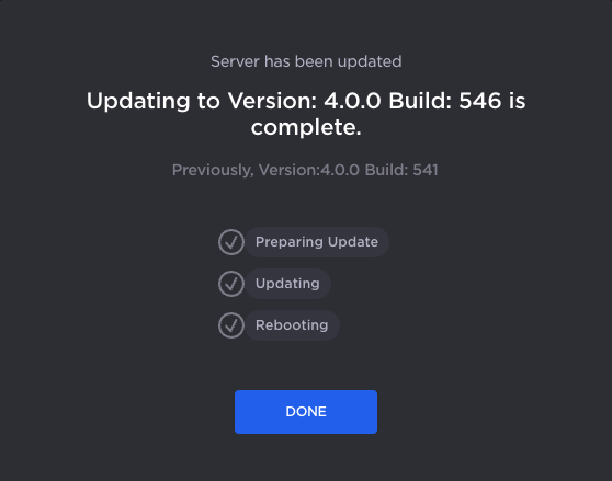 After the reboot and update are complete, click Done. You will be re-directed to the Kraken Sign-in page. If not, refresh your browser.