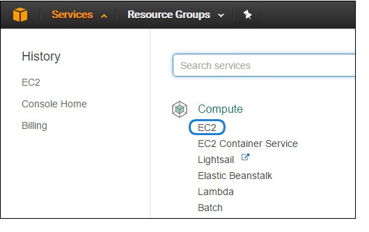 After you have successfully logged in to the AWS portal, click Services > EC2.