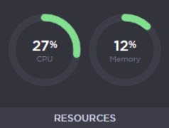 The percentage of CPU and Memory Resources being used.