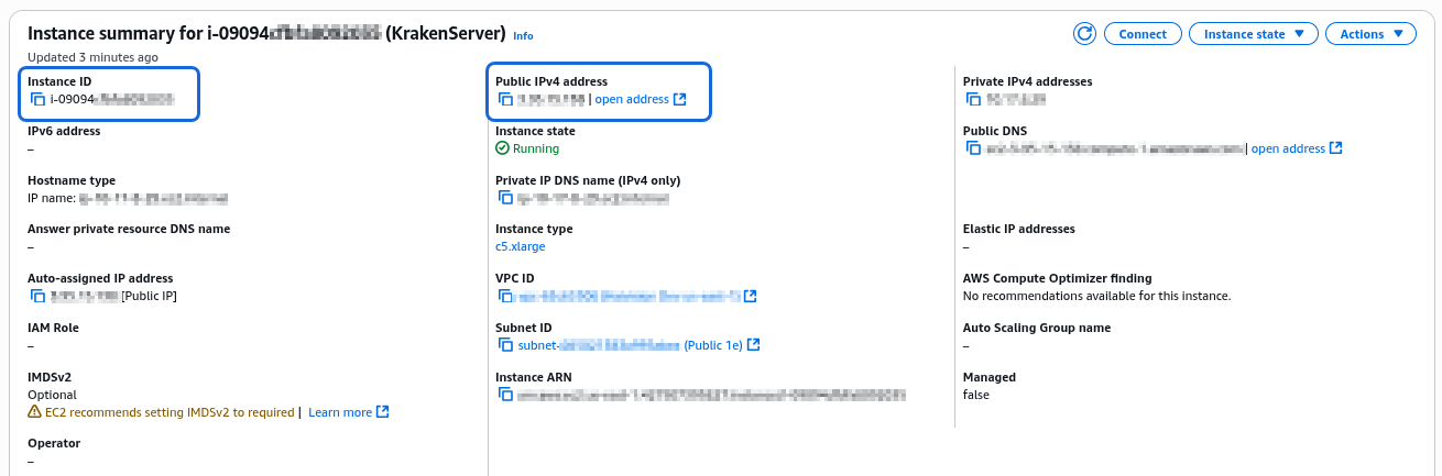 Return to the AWS Instances page. Check the check box in the row corresponding to your server to open the Instance Summary.