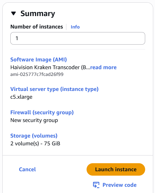 Choose an Instance Type. For high bandwidth streams or critical viewing requirements, we recommend using Compute Optimized C5 Instances (e.g. c5.xlarge, c5.2xlarge, etc.) tiers, as they are optimized for compute-intensive workloads and have high-performance network I/O. c5.2xlarge is generally recommended for Kraken AWS.