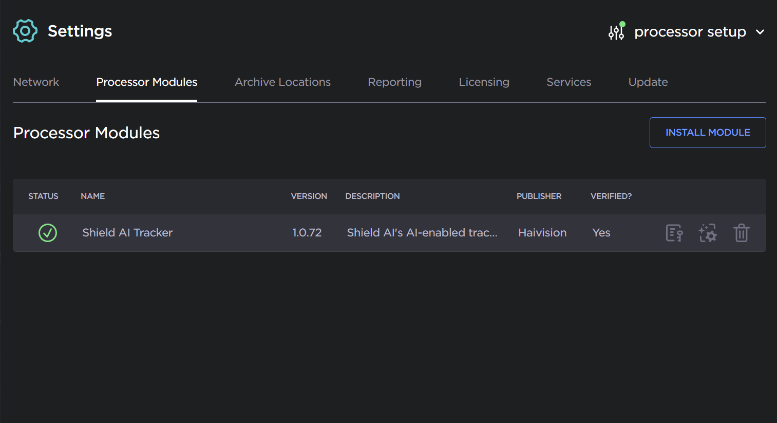 If you are installing the Shield AI Tracker Processor Module, you must have the Shield AI Tracker license installed. For details on licensing, see Licensing Your Kraken.