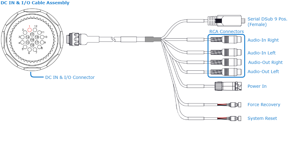 Insert the Power (DC) In and I/O breakout cable connector into the power input port.