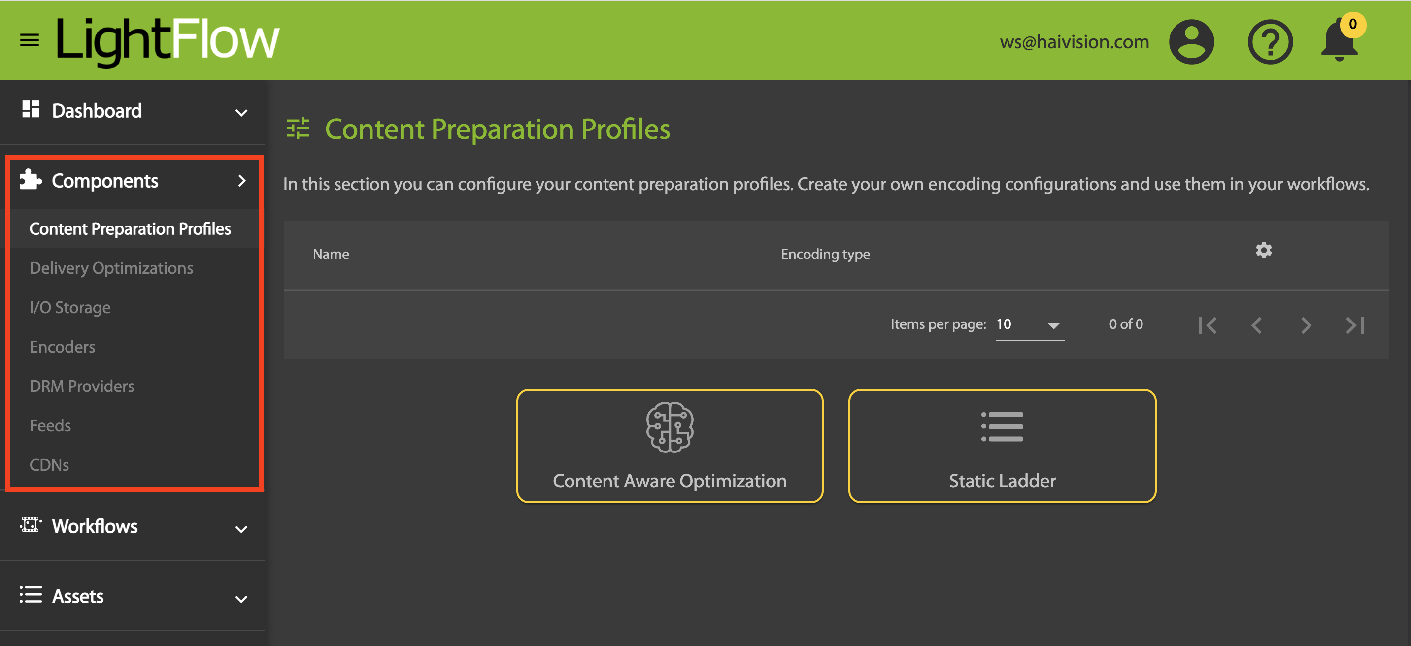 There are a number of parameters that you can (or must) define in order to use the LightFlow API with your video assets, or to create workflows. These parameters are grouped into Components, described in the following sections: