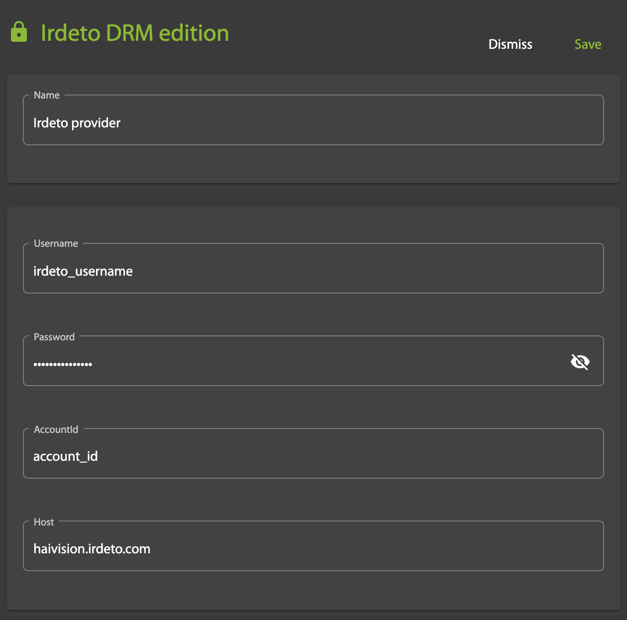 - Account ID: Irdeto Account ID