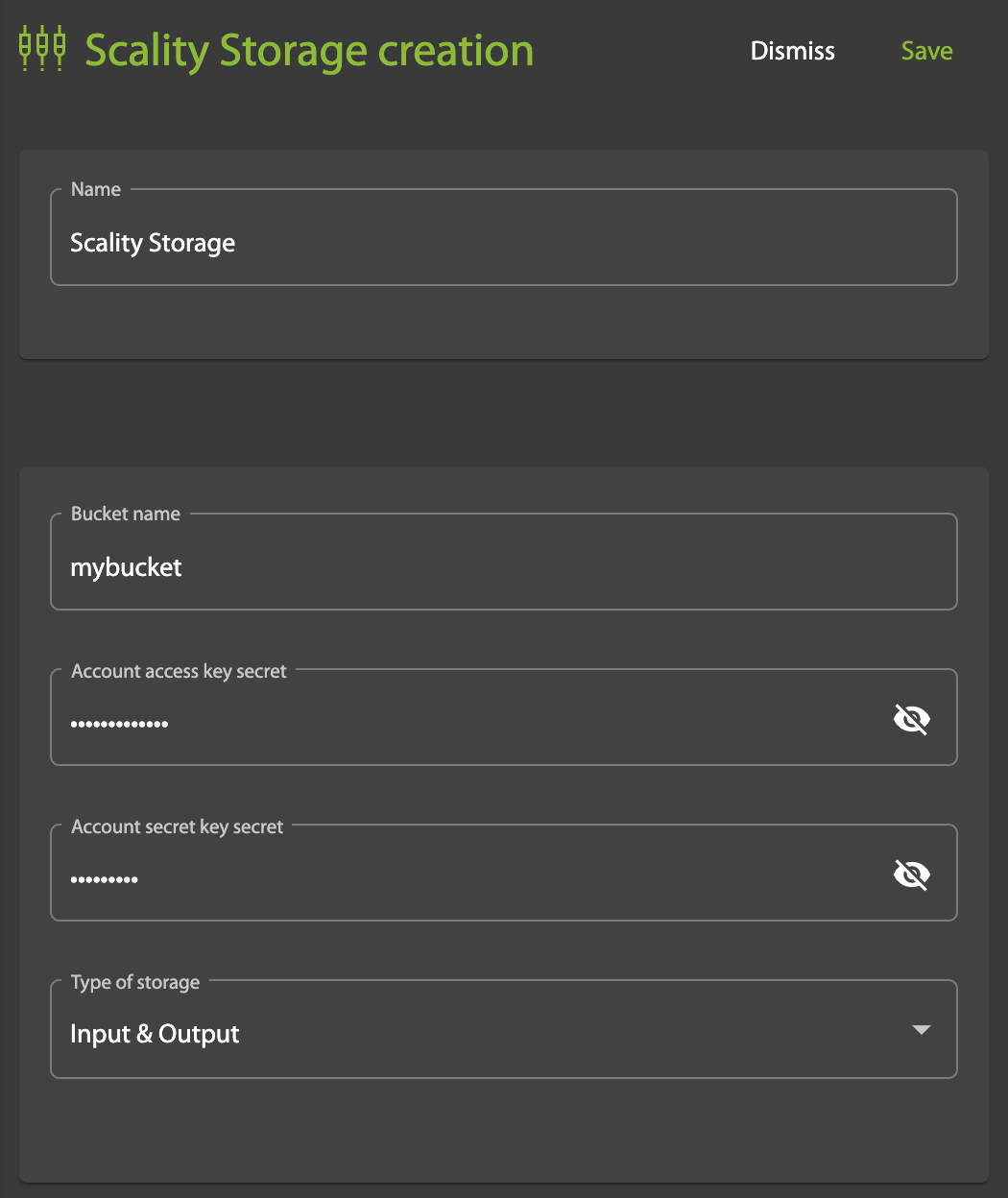 A Scality container can be defined as an input and/or output location for your videos using either the LightFlow portal or API.