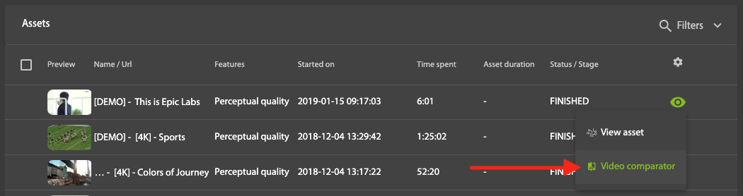 Publishing an asset using LightFlow as the encoder will produce LightFlow-optimized output, including at least two or three industry standard renditions to feed to the Video comparator tool.
