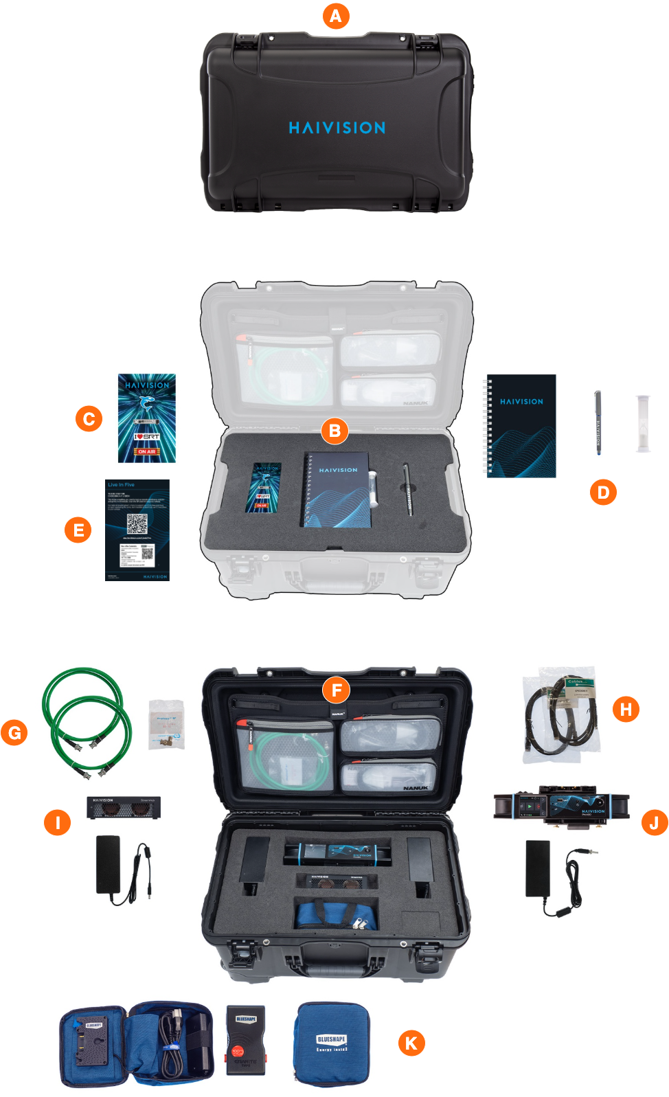 Transmitter (Pro360-5G or Pro460 with Gold or V-Mount) with 6 SIM cards pre-configured with 40 GB of data