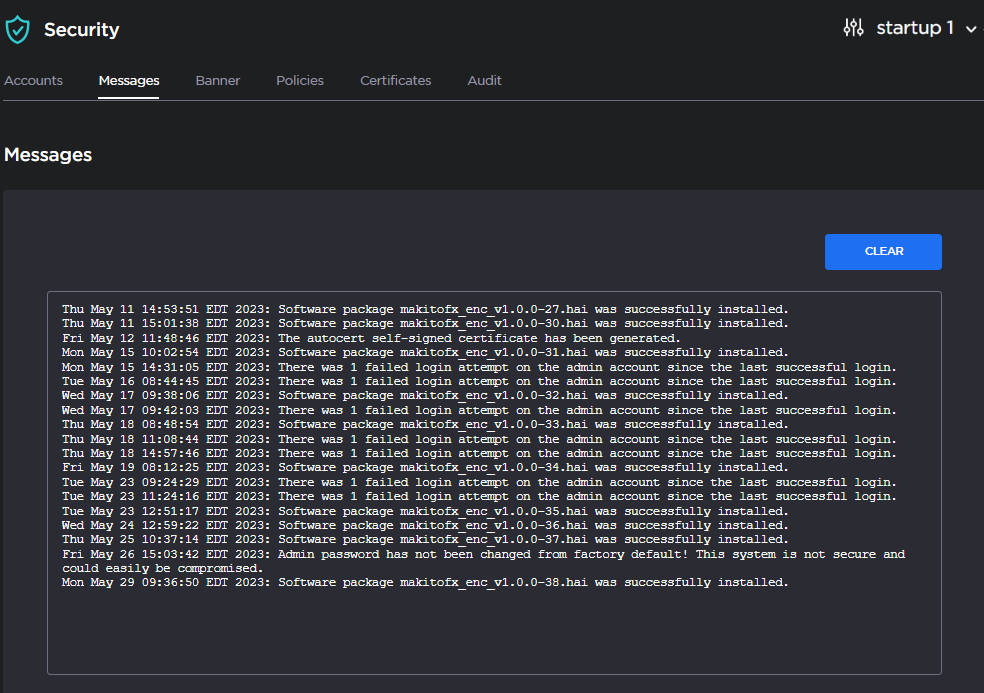 To delete the messages, click Clear. The following warning panel appears: