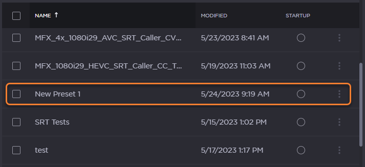 To select an existing preset to load at startup, click the radio button under the Startup column in the desired preset row.