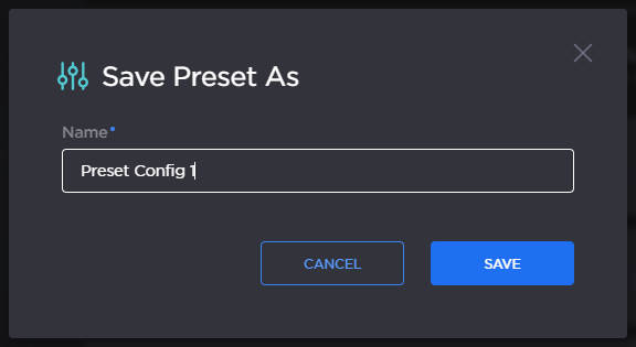 To save the current configuration as a new preset, click Save As... from the dropdown menu.