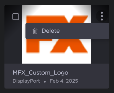 To delete a logo, find it in the list of available logos, click the vertical ellipsis menu, and click Delete.