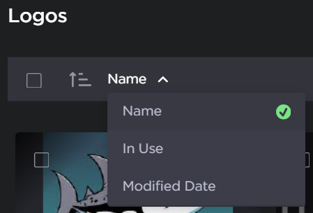 By Name, logos In Use, or Modified Date by clicking the sort logos drop-down,