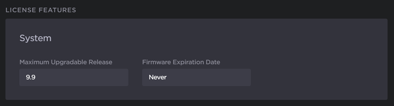 The System values show the version limit (Maximum Upgradable Release) and Expiration Date for the current license. The encoder will block installation of firmware versions that are above the Maximum Upgradable Release version. The unit will remain functional as long as it has not reached the Expiration Date. To obtain an updated license, please contact Sales@haivision.com.