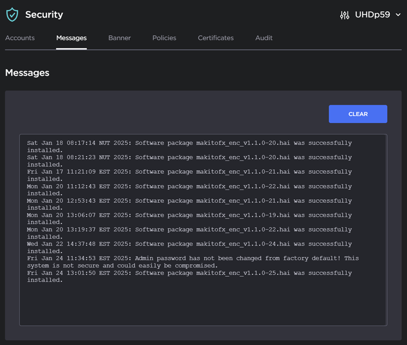 The Messages page displays a limited number of important administrator actions recorded such as installation of a software package, failure to establish or maintain connectivity with a remote syslog server, Power-On Self Test (POST) errors, and other noteworthy events.