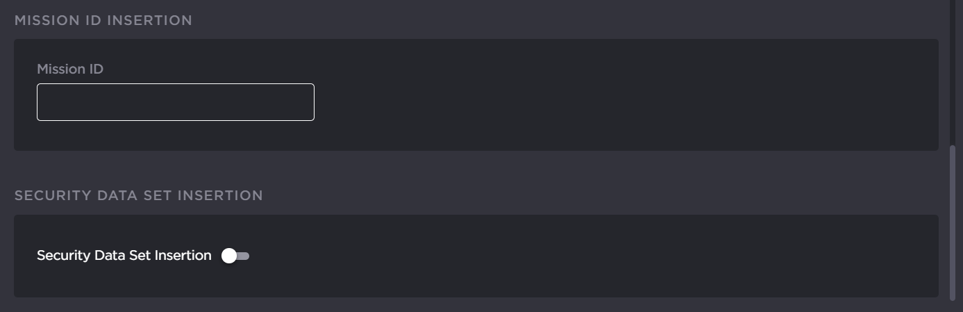 Mission ID Insertion: Configure a mission ID string of up to 127 characters.