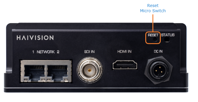Factory Reset: If the problem remains after performing a reset, it may help to restore the encoder to its factory default settings. A factory reset returns the encoder to the same settings it originally had when shipped from Haivision, including the factory default IP address, subnet, and gateway.