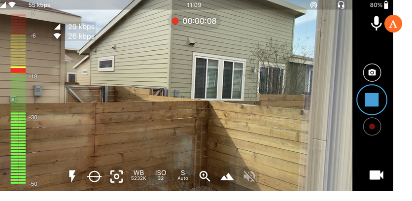 Tap Select to confirm. If an external microphone is selected, the Audio Inputs icon changes, as shown in the following example.