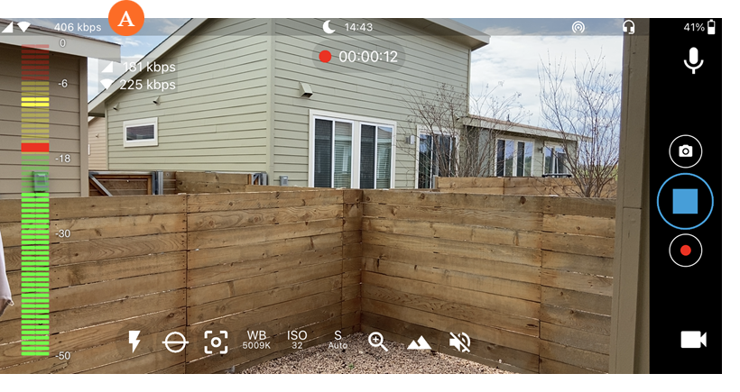 While live streaming, the aggregate bandwidth is displayed in the corner of the screen. Tap it to view the bandwidth across cellular and Wi-Fi connections, as shown in the following example.