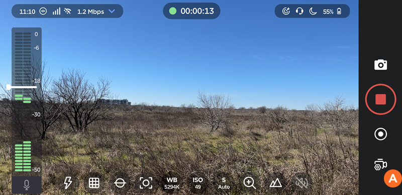On the Live or Record screen, tap the