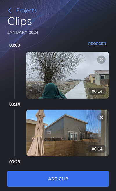 Tap a thumbnail to trim the clip or adjust its volume. See Trimming Clips for more information.