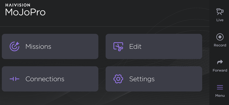When connected to a Manager configured to support a Story-Centric Workflow, MoJoPro can be assigned missions. Missions consist of .XML or .JSON files containing data pushed from NRCS (News Room Computer System) or PAM (Program Asset Management) systems. When a MoJoPro user selects a mission, live streams and forwarded files are transmitted to the connected receiver with mission metadata. For information on creating missions and managing Story-Centric Workflows, please refer to the Manager User Guide.