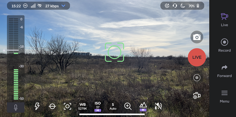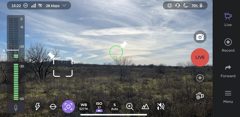 To help target ISO and focus adjustments, the camera view includes reticles.