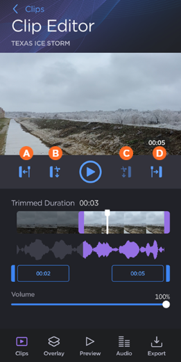 Tap a clip thumbnail to open the Clip Editor: