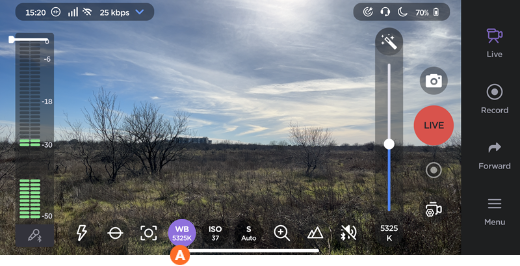 3. Tap the   icon to enter manual adjustment mode. The icon changes to . Two new icons appear beside it, A and B, which allow you to manually adjust and save white balance temperatures.
