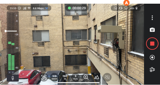 When a video return has been added, a new icon is visible on the top bar of the Live and Record screens.