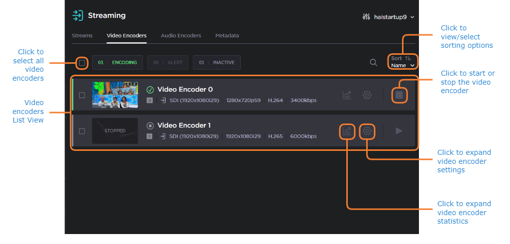 Video Encoders List View