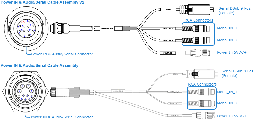 - Power & I/O connector combining these inputs: