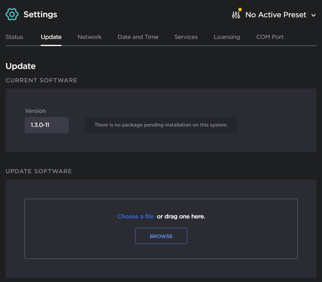 Before you can install a firmware update on the Makito X1, you may need to obtain and install an updated license (depending on the version limit and expiration date of the currently installed license). For more information, see Managing Licenses.
