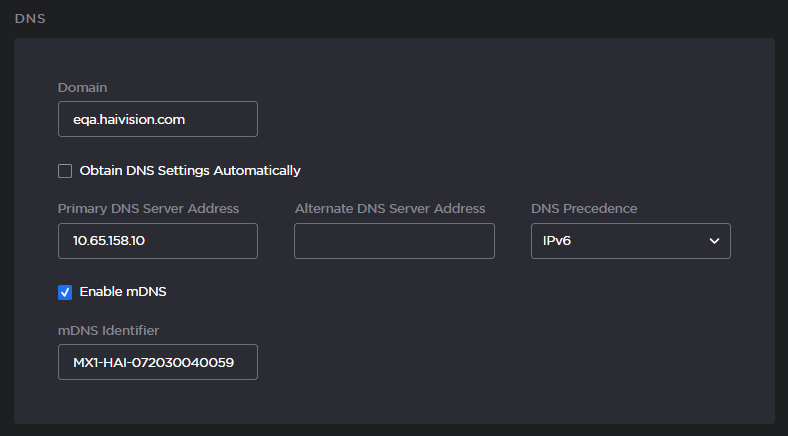 From the Network Configuration page, you can modify the network interface settings for the Makito X1, including configuring the unit with a valid IP address and gateway to work in your environment. You can configure the network to use either IPv4 or IPv6 addressing, or both. The default is IPv4.