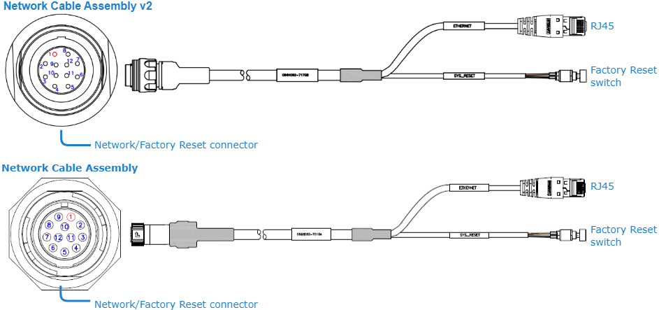 Network connector – 10/100/1000 Base-T Gigabit Ethernet; connector also includes a Reset line