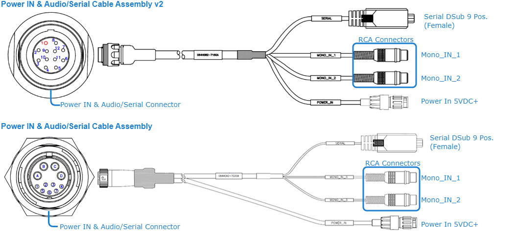 The Ethernet/Factory Reset and Power/Audio/Serial breakout cables (shown in the following steps) are shipped as part of the Evaluation Kit (#S-MX1E-R-SDI1-DK/#S-MX1E-R-V2-SDI1-DK).