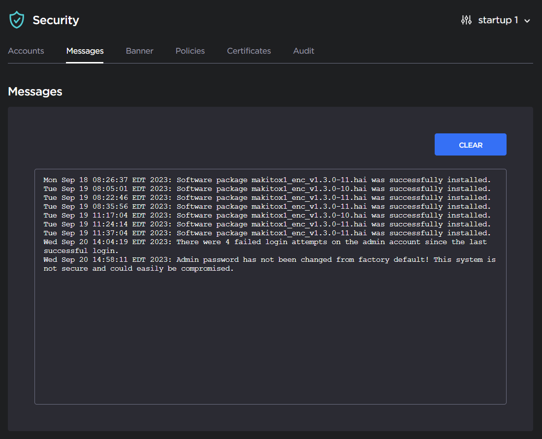 - To delete all messages, click Clear. The following warning panel appears: