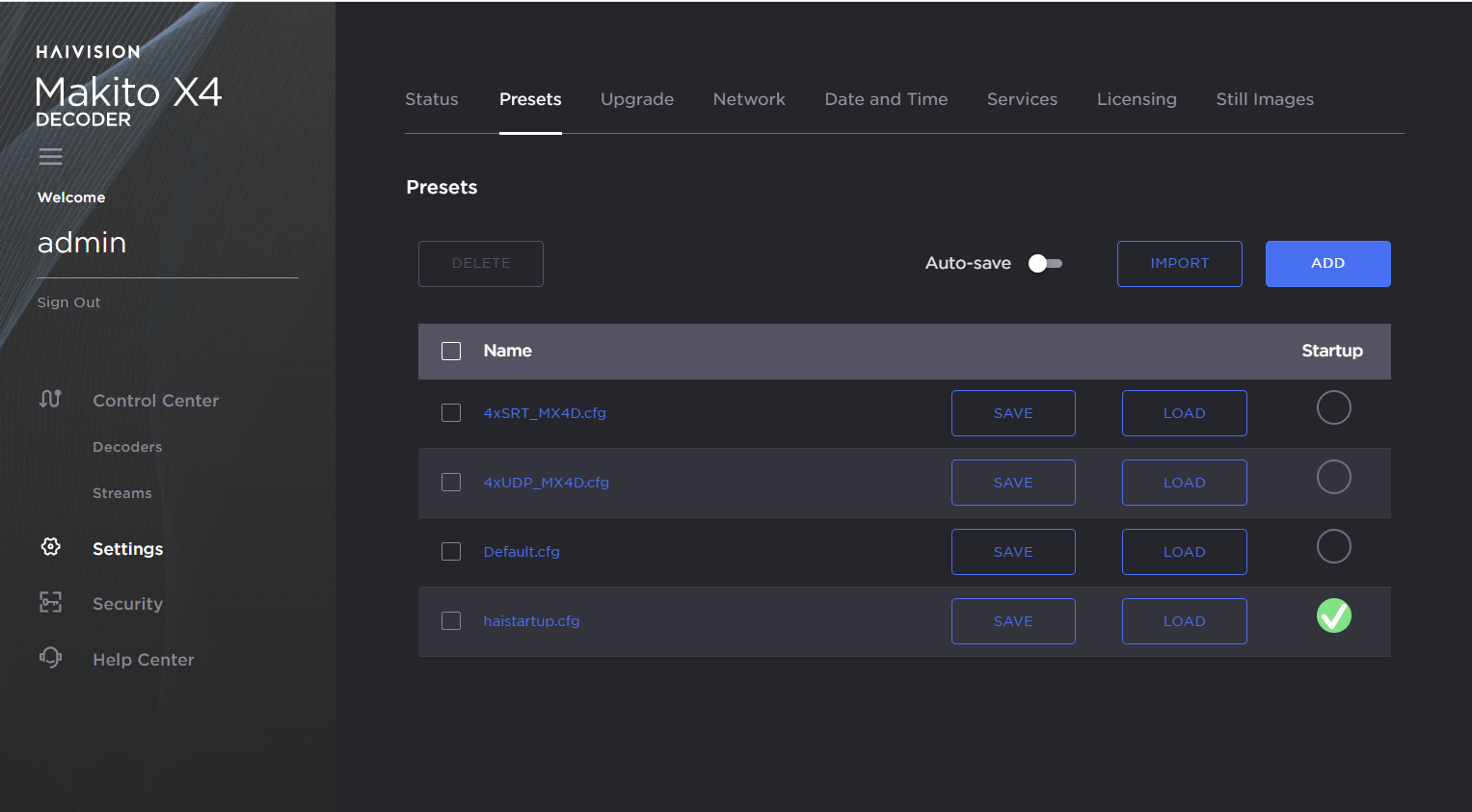 Preset Auto-Save is enabled by default on new units and after factory reset, but disabled when upgrading from an older version of firmware that did not support this feature in order to avoid confusing users accustomed to the old preset workflow. If you do not have a Startup preset before enabling Auto-Save, then enabling it will automatically create the haistartup.cfg preset and automatically refresh the page to show the new preset.