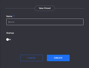 To select an existing preset to load at startup, hover over the preset row and click the (empty) circle under Startup.