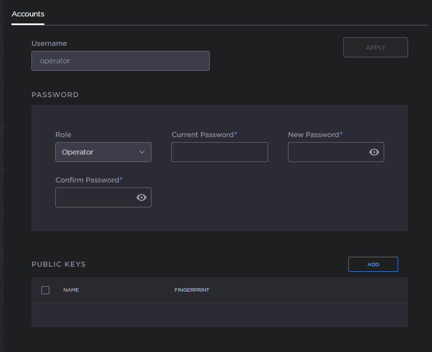 Click Apply. The new password will take effect immediately.