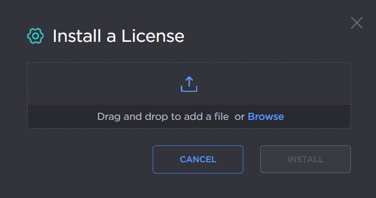 Click Browse, or drag and drop, to select a license file.