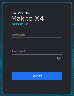 Please refer to the Important Notice (postcard shipped with the appliance or available from the Download Center on the Haivision Support Portal) for the default sign-in credentials.