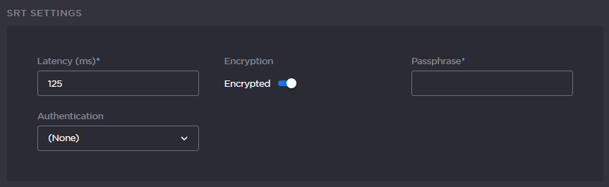 For a full list of SRT settings, see SRT Stream Settings.