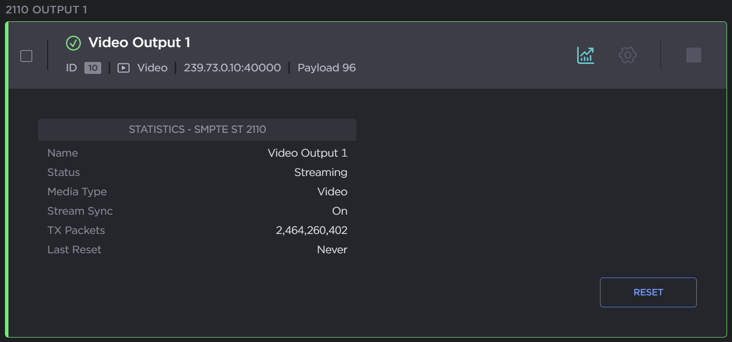 From the Outputs page, you can bind Streams to ST 2110 outputs. You can configure up to four ST 2110 outputs, each with their own Video, Audio, and Ancillary Data sources.